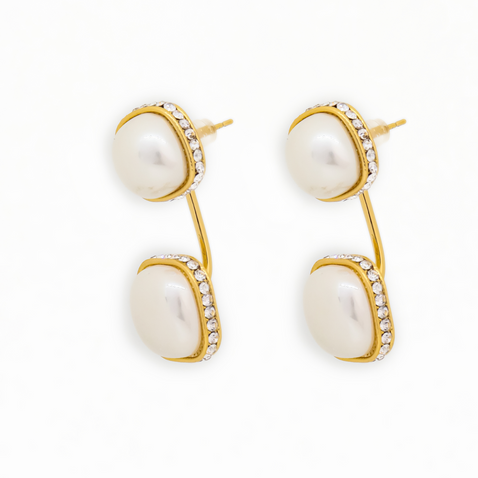 At Astrea Jewelry, we celebrate local craftsmanship by offering exquisite pieces that you’ll cherish. Each earring features a lustrous pearl surrounded by shimmering zircon inlays, blending classic beauty with modern versatility.