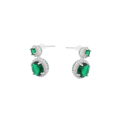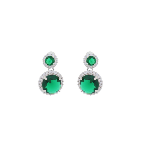 Round Zircon Surrounded With Clear Zircon Premium Drop Earrings - Green